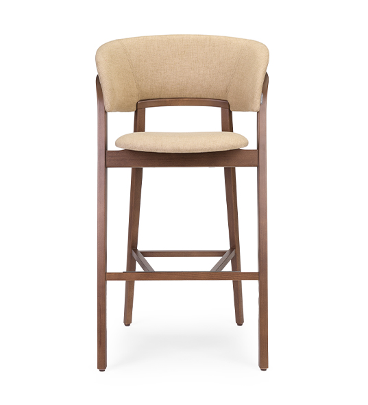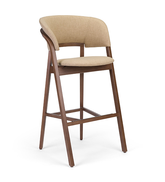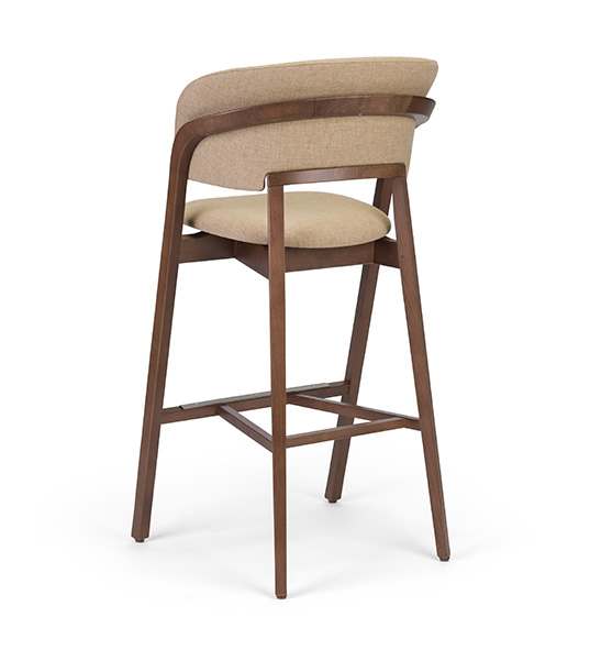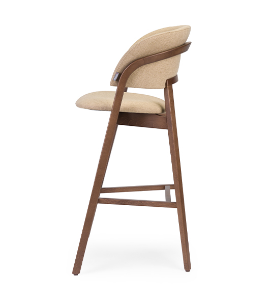 The Arc bar stool is fully customizable with hardwood frame stained to order and available in bespoke upholstery finishes.