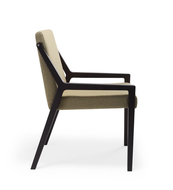 The Arlo Carver is fully customizable with hardwood frame stained to order and available in bespoke upholstery finishes