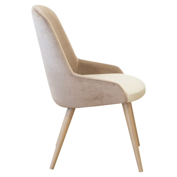 The Astra side chair is fully customizable with hardwood frame stained to order and available in bespoke upholstery finishes.