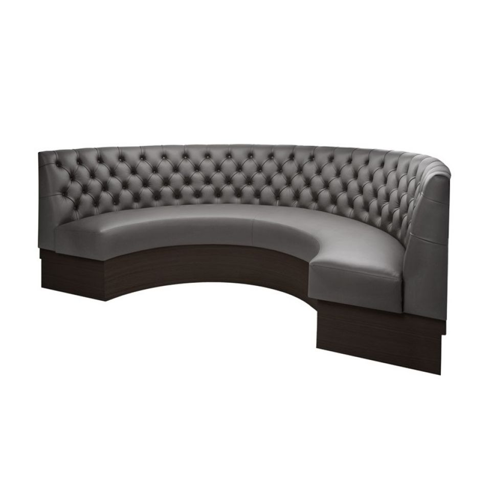 The Curved banquette can be made to any dimension, in bespoke upholstery finishes and with different plinth detail.