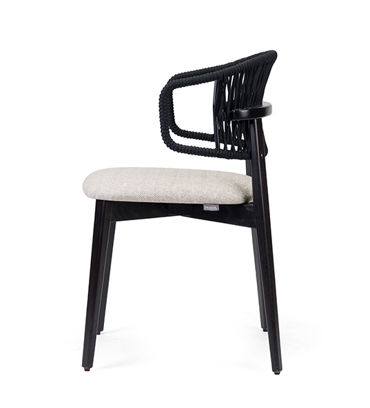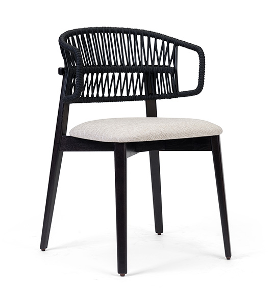 The Eclipse side chair is fully customizable with hardwood frame stained to order and available in bespoke upholstery finishes.