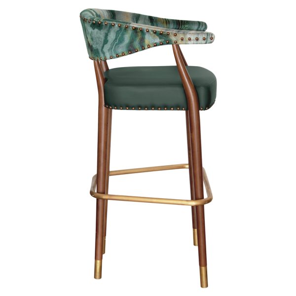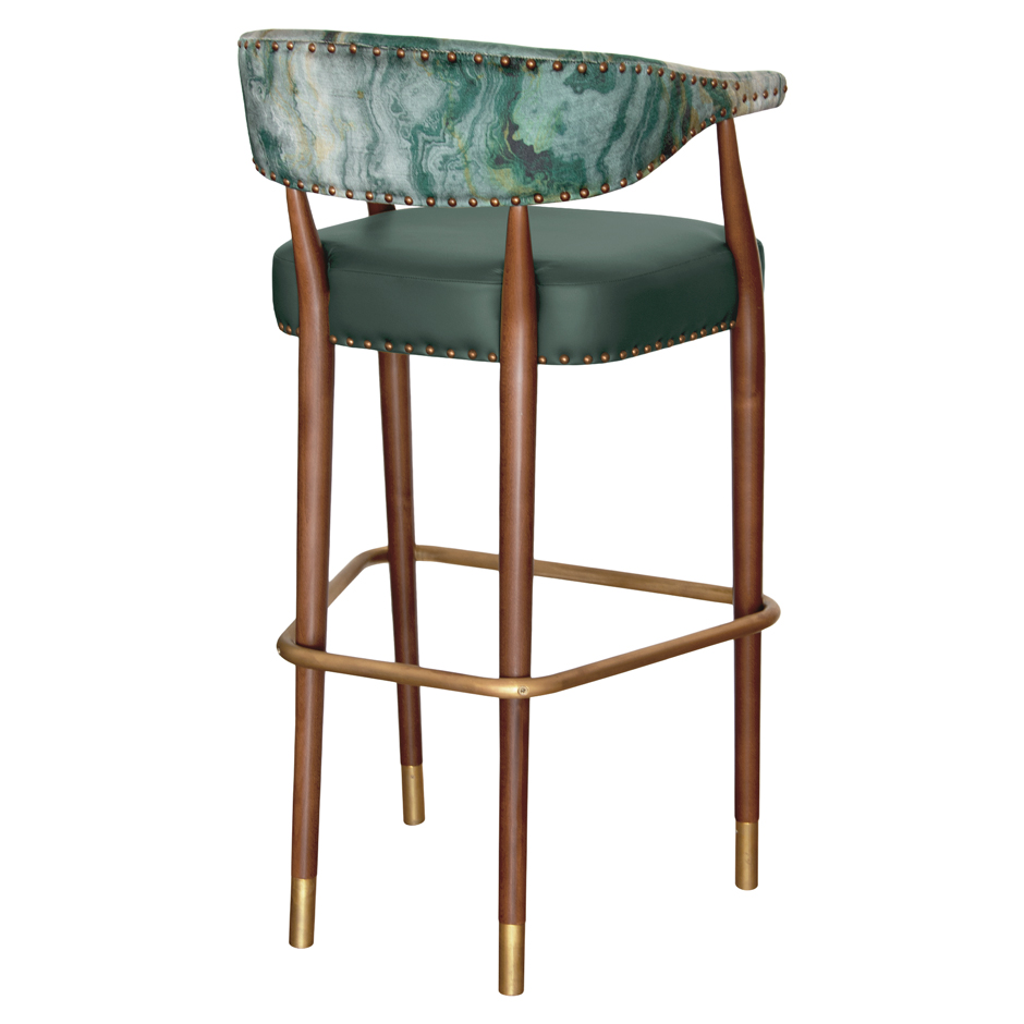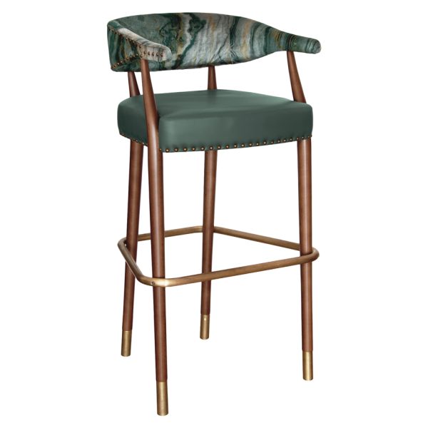 The Josh stool is fully customizable with hardwood frame stained to order and available in bespoke upholstery finishes.
