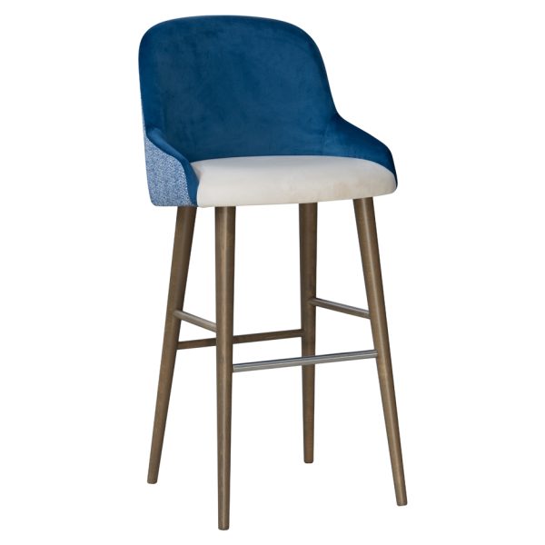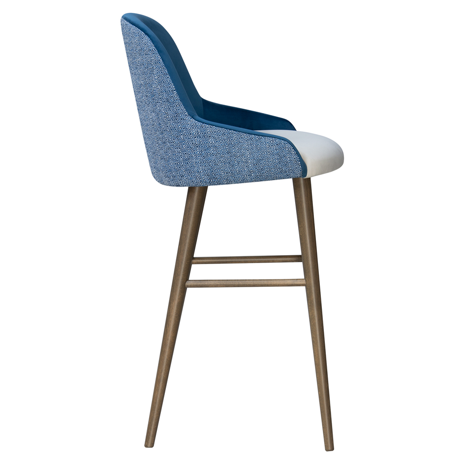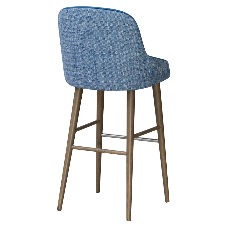 The Luminous bar stool is fully customizable with hardwood frame stained to order and available in bespoke upholstery finishes.