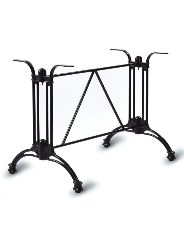 The Torsten table base is both stylish and durable. Manufactured in aluminium and powder coated black it is suitable for use both indoors and out. Height 695mm. Maximum top size 1400 x 700mm